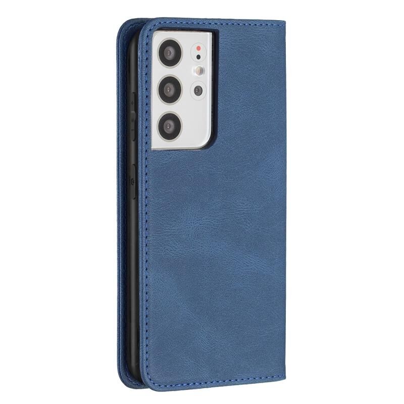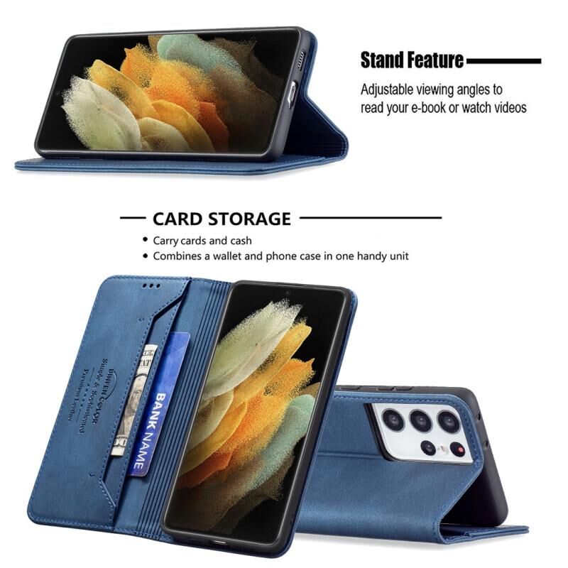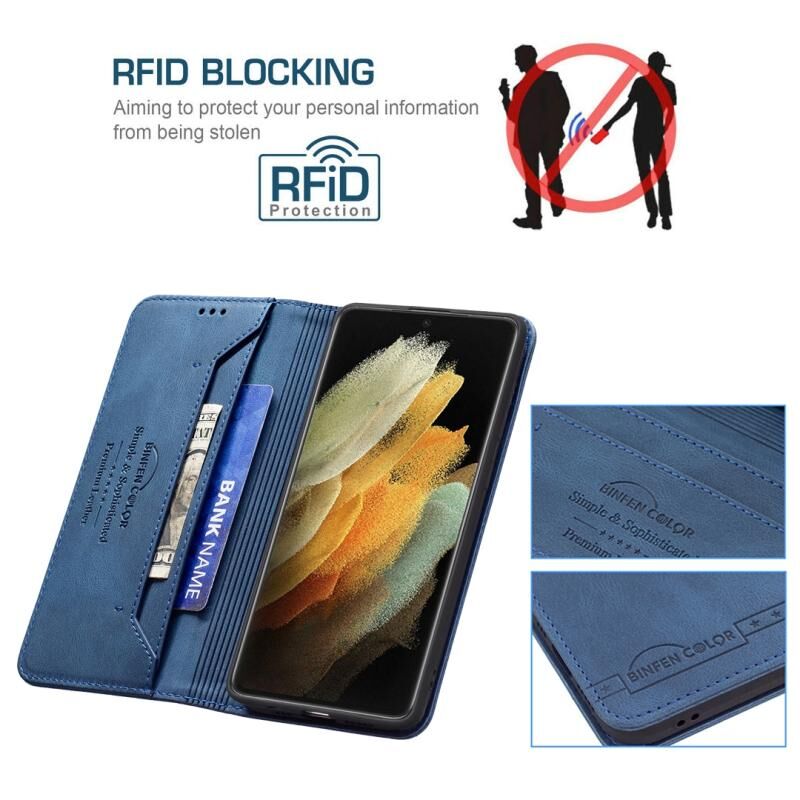 Για Samsung Galaxy S21 Ultra 5G Μαγνητικό RFID Blocking Anti-Theft Δερμάτινη θήκη με θήκη & υποδοχές για κάρτες & πορτοφόλι (μπλε)