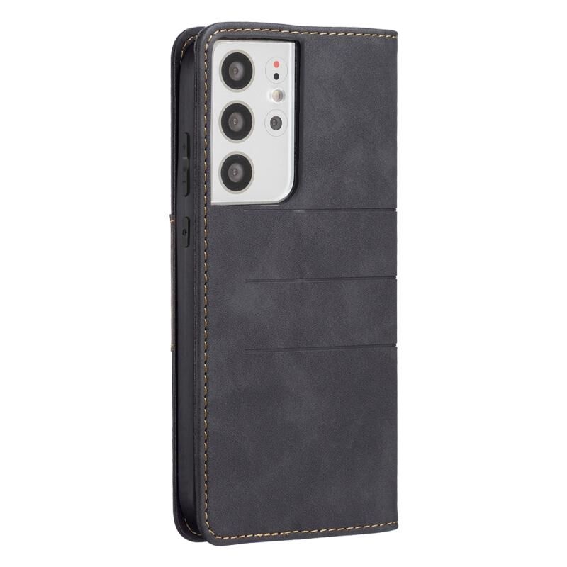 Για Samsung Galaxy S21 Ultra 5G Μαγνητική θήκη τηλεφώνου δερμάτινη (Μαύρο)