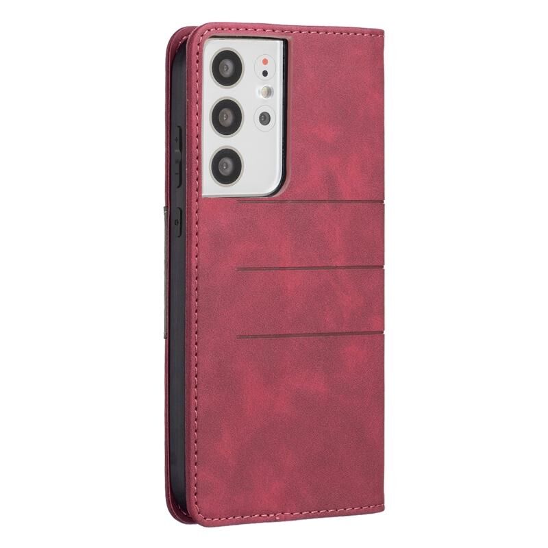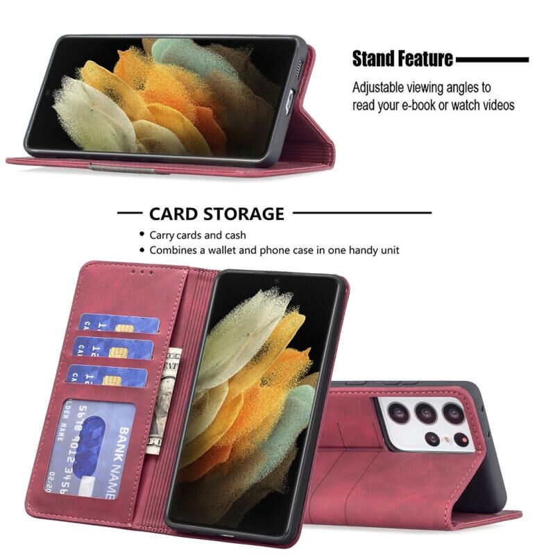 Για Samsung Galaxy S21 Ultra 5G Μαγνητική θήκη τηλεφώνου με δερμάτινη επικόλληση (κόκκινο)