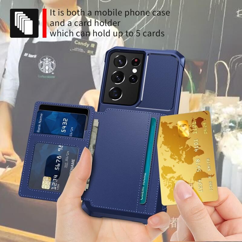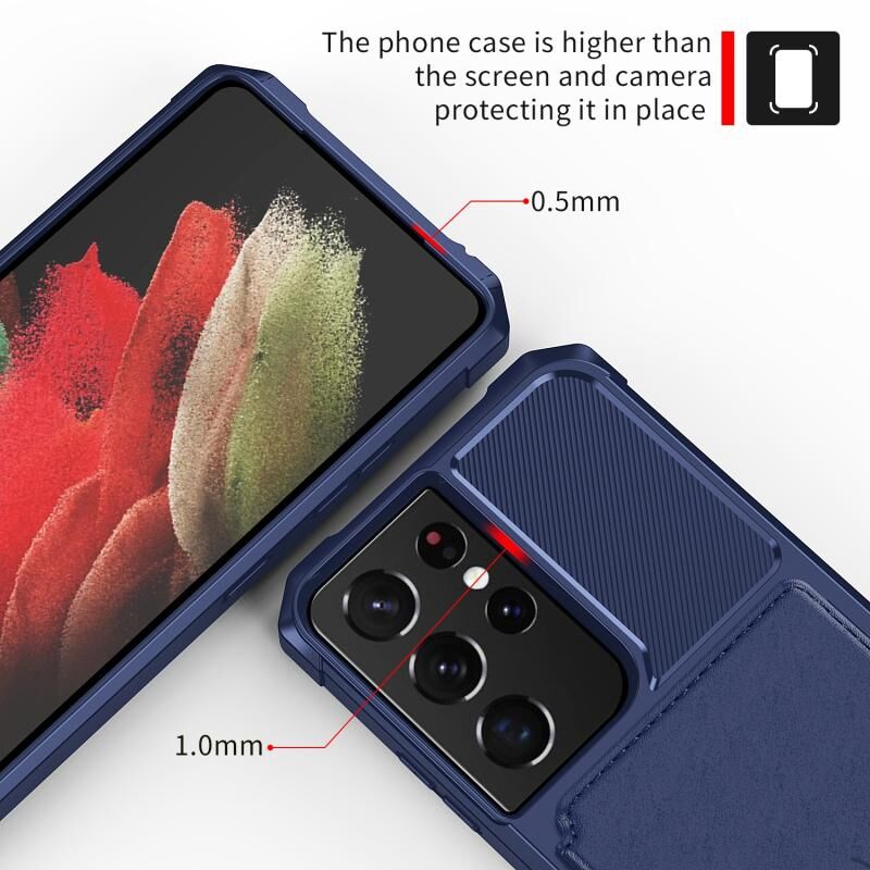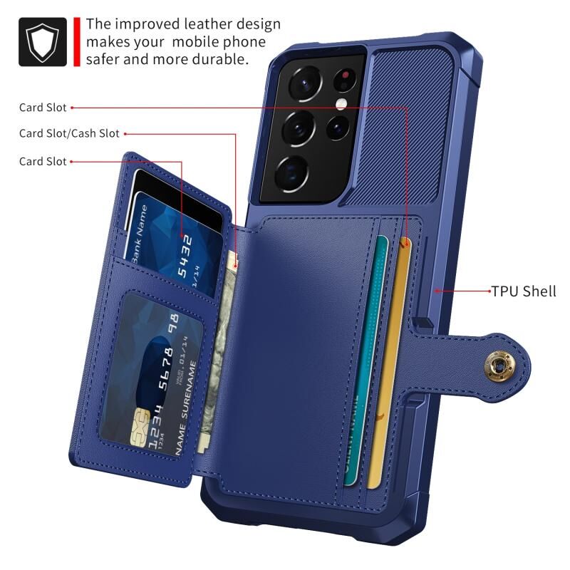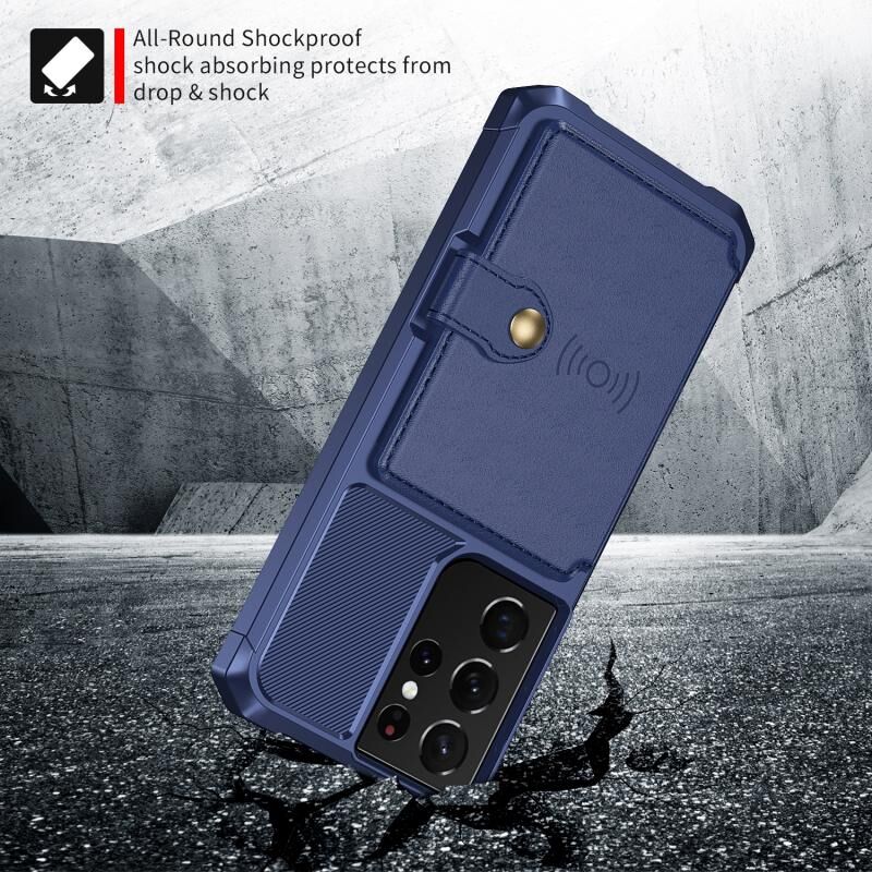 Για Samsung Galaxy S21 Ultra 5G μαγνητικό πορτοφόλι κάρτα τσάντα τσάντα δερμάτινη θήκη τηλεφώνου (Navy Blue)