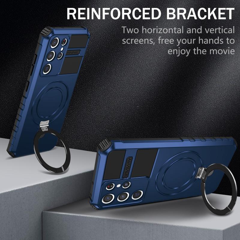 For Samsung Galaxy S21 Ultra 5G MagSafe Magnetic Holder Phone Case(Blue)