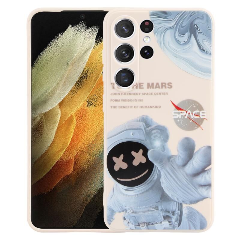 For Samsung Galaxy S21 Ultra 5G Martian Astronaut Pattern Shockproof Phone Case(White)