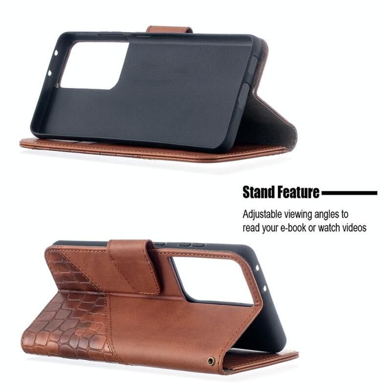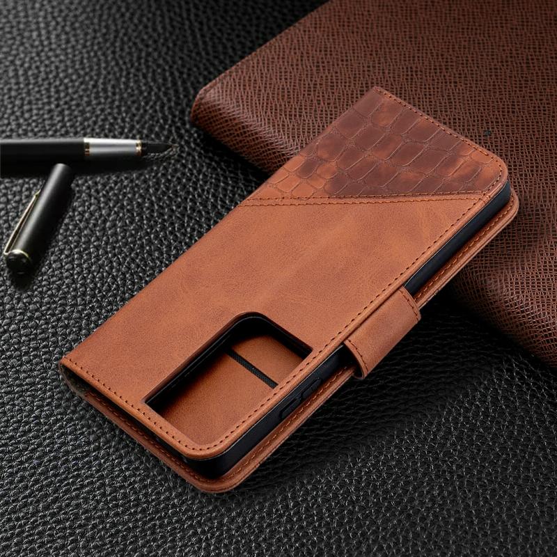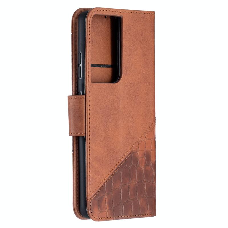 For Samsung Galaxy S21 Ultra 5G Matching Color Crocodile Texture Horizontal Flip PU Leather Case with Wallet & Holder & Card Slots(Brown)
