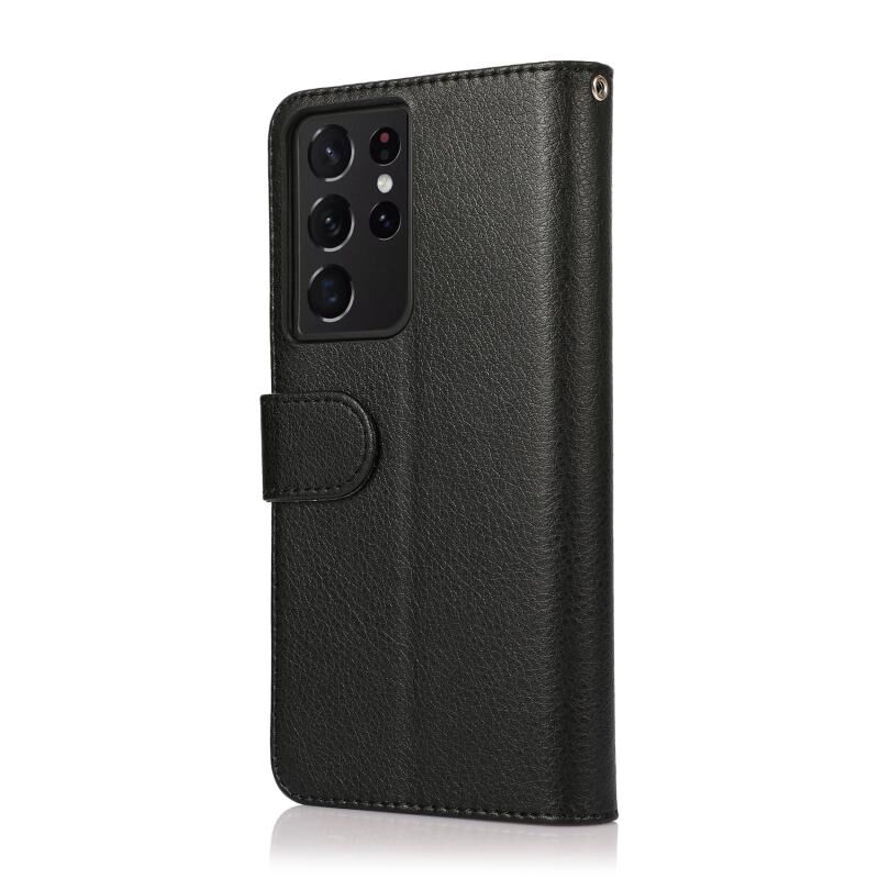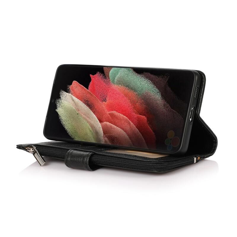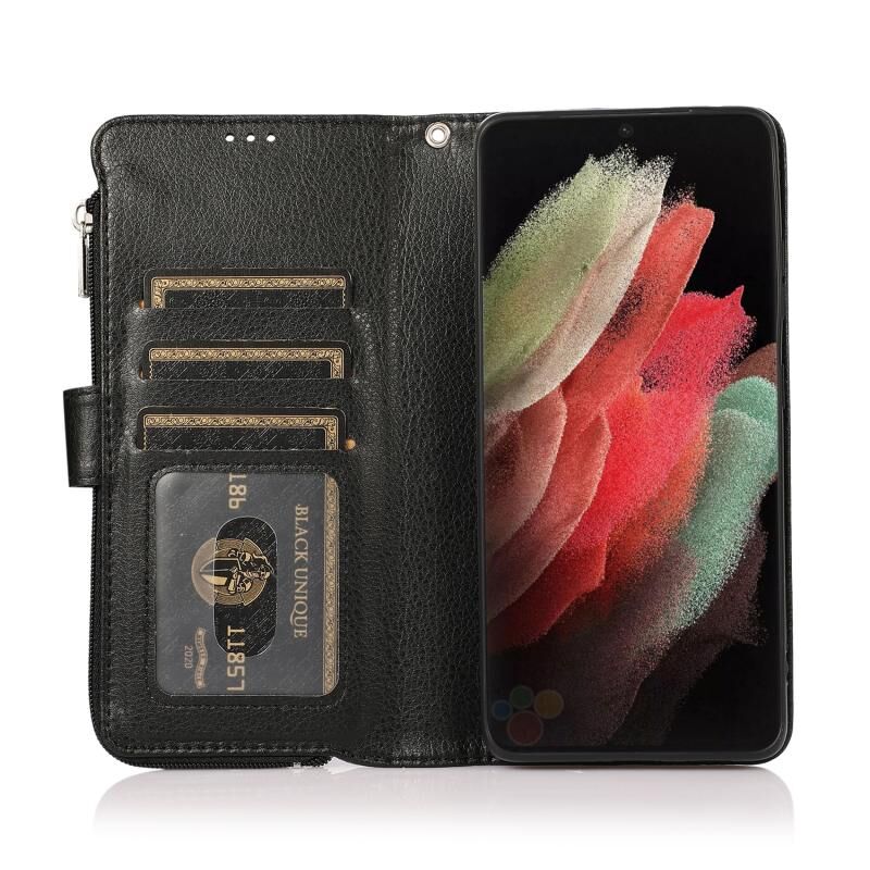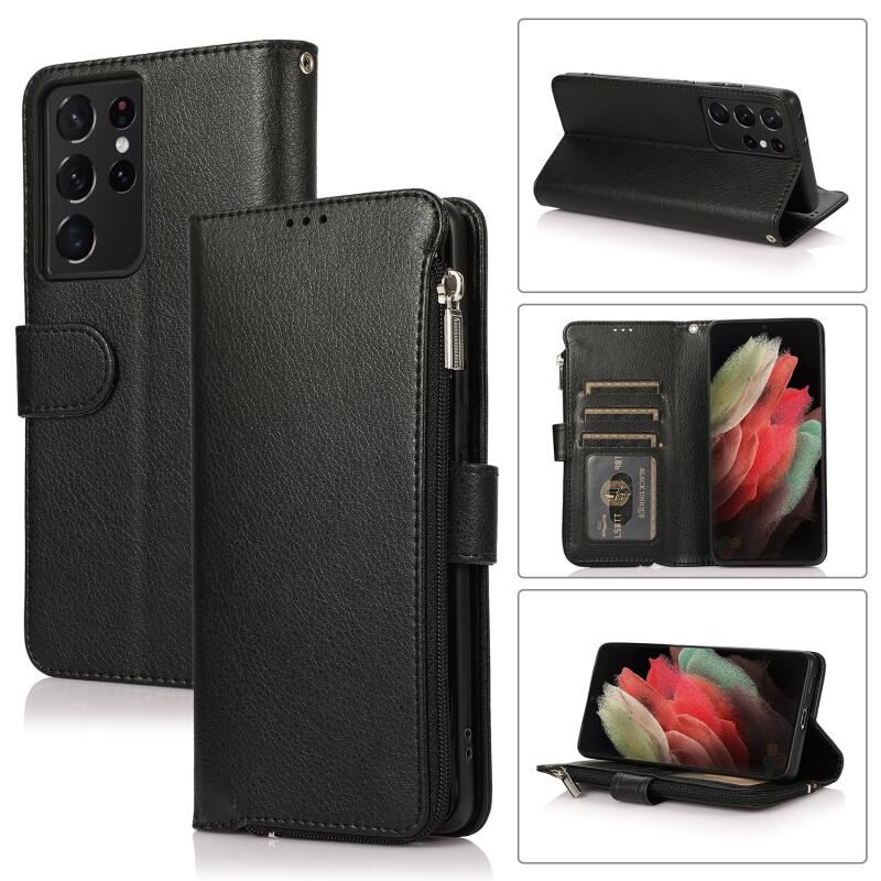 Για Samsung Galaxy S21 Ultra 5G Microfiber φερμουάρ οριζόντια Flip δερμάτινη θήκη (μαύρο)