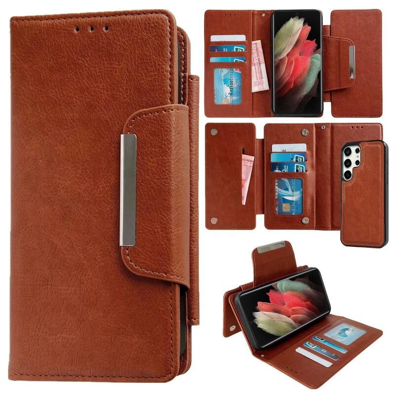Για Samsung Galaxy S21 Ultra 5G Πολυλειτουργική 7-κάρτα πορτοφόλι δερμάτινη θήκη τηλεφώνου (καφέ)