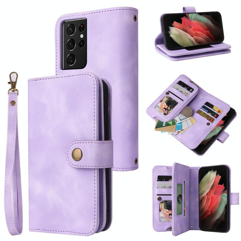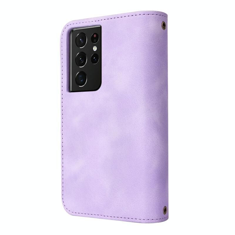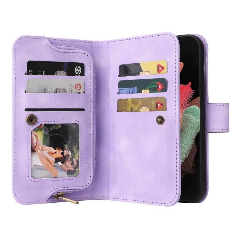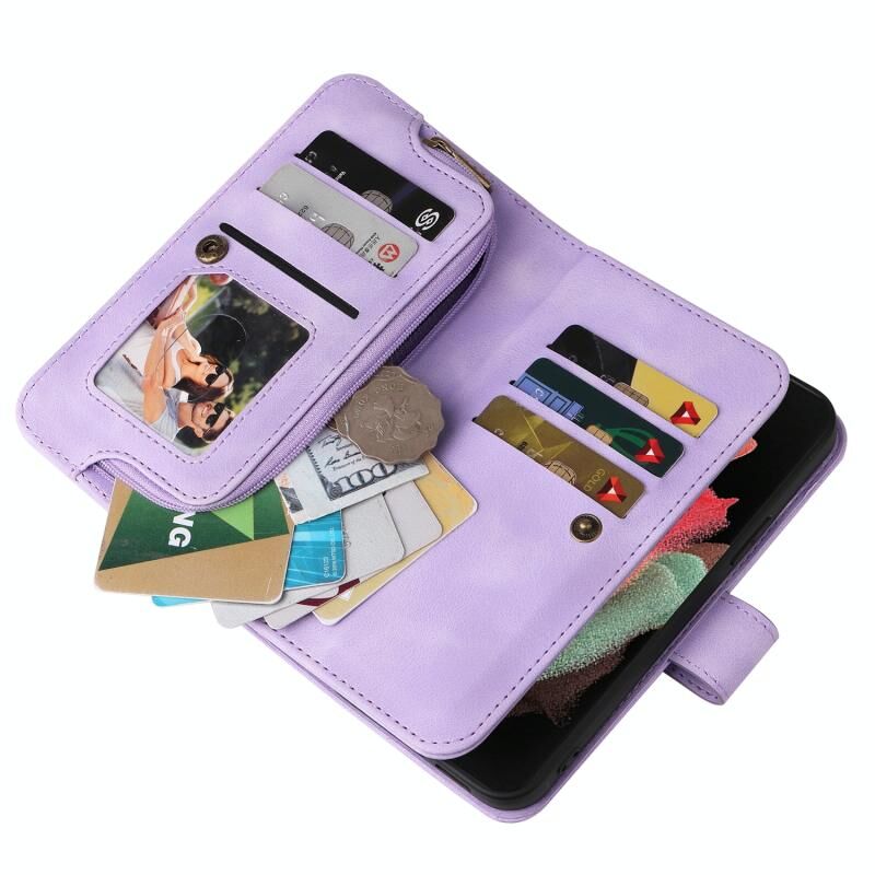 Για Samsung Galaxy S21 Ultra 5G Πολυλειτουργική κάρτα Slot φερμουάρ πορτοφόλι δερμάτινη θήκη τηλεφώνου (μωβ)