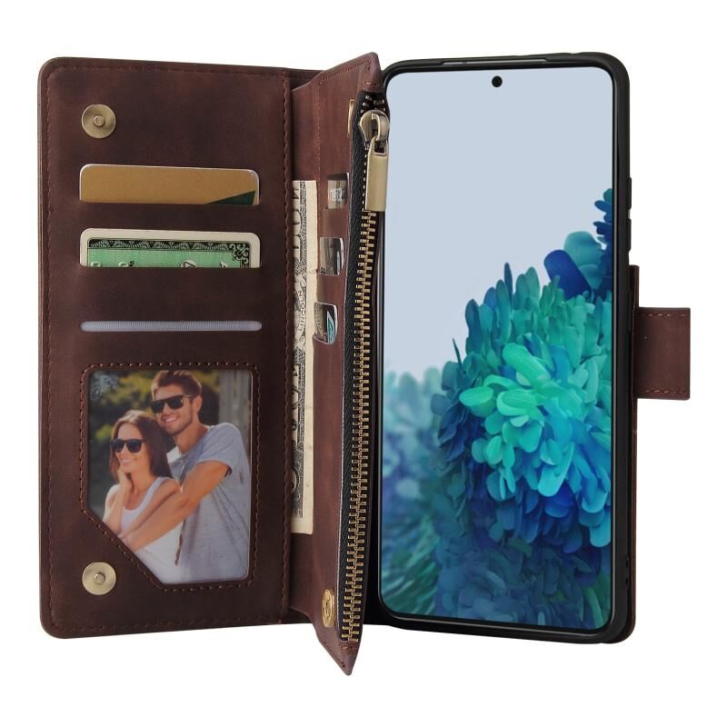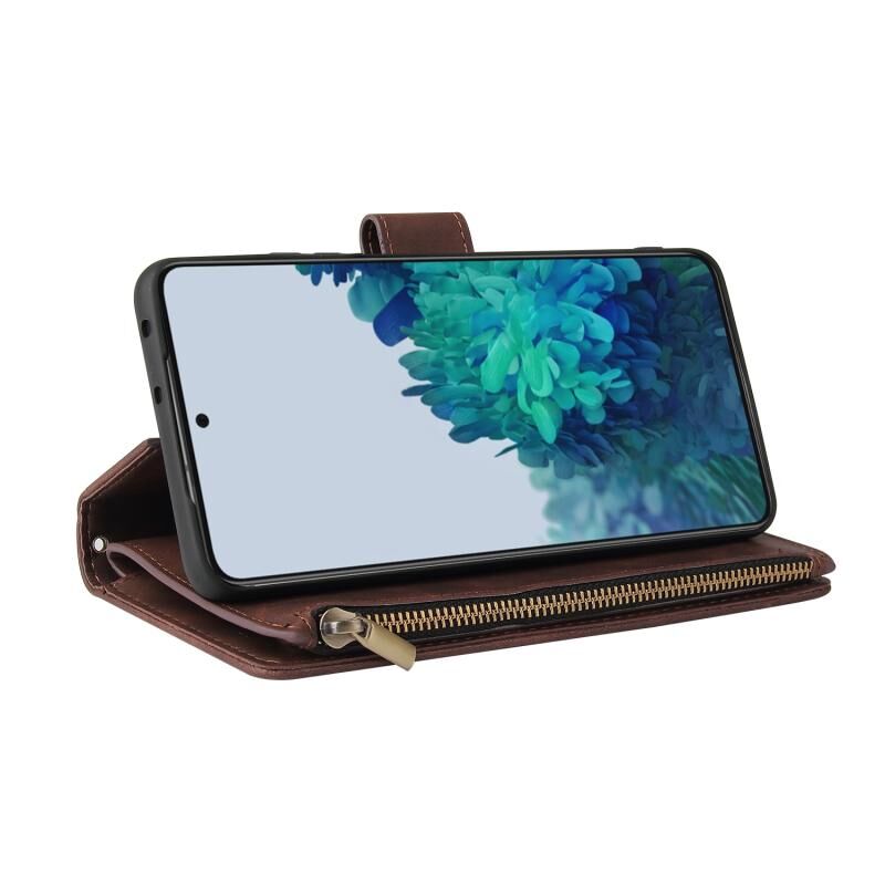 Για Samsung Galaxy S21 Ultra 5G Πολυλειτουργικό παγωμένο φερμουάρ πορτοφόλι δερμάτινη θήκη τηλεφώνου (καφέ)