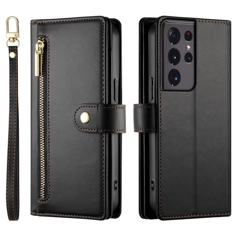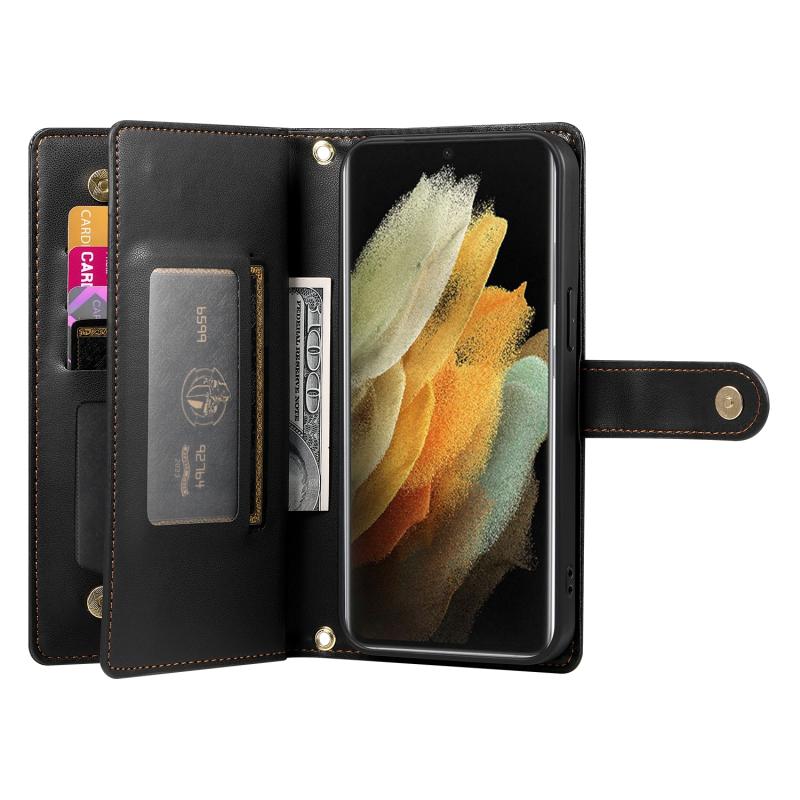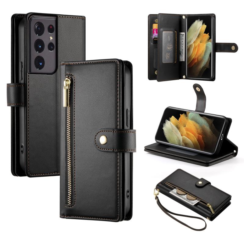 For Samsung Galaxy S21 Ultra 5G Nine Card-slot Zipper Wallet Bag Leather Phone Case(Black)