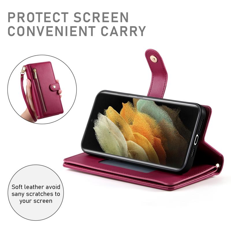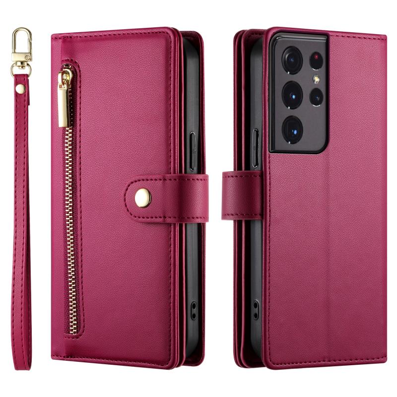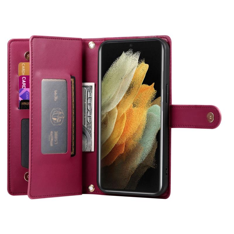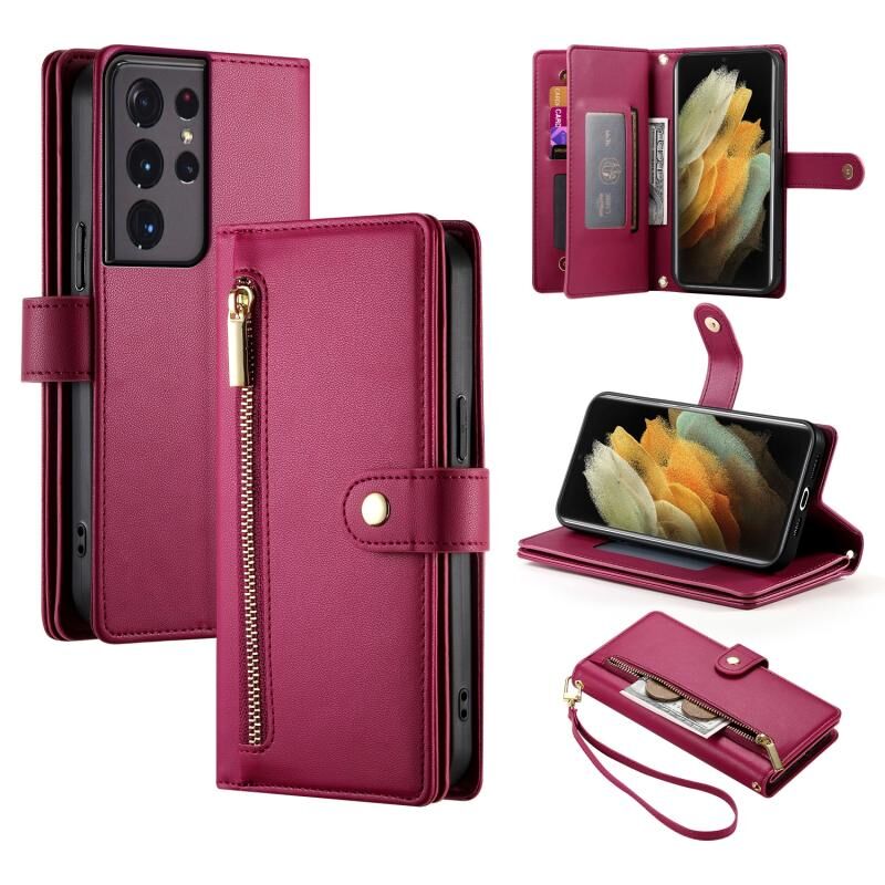 For Samsung Galaxy S21 Ultra 5G Nine Card-slot Zipper Wallet Bag Leather Phone Case(Red)
