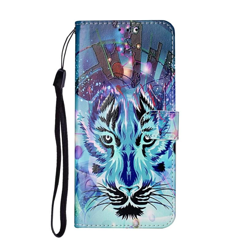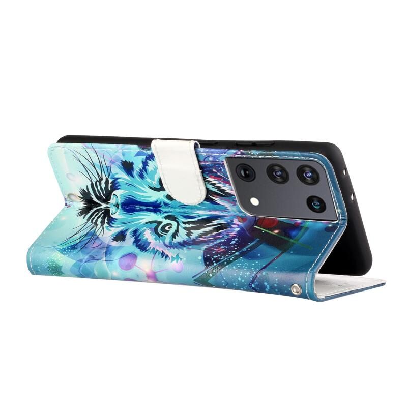 Θήκη Samsung Galaxy S21 Ultra 5G με ανάγλυφο σχέδιο λαδιού, πολύχρωμη, οριζόντια, από δερματίνη PU με βάση στήριξης, θήκες για κάρτες, πορτοφόλι & κορδόνι (Τίγρης)