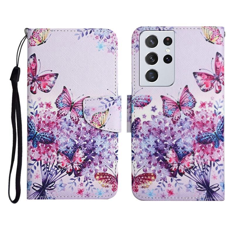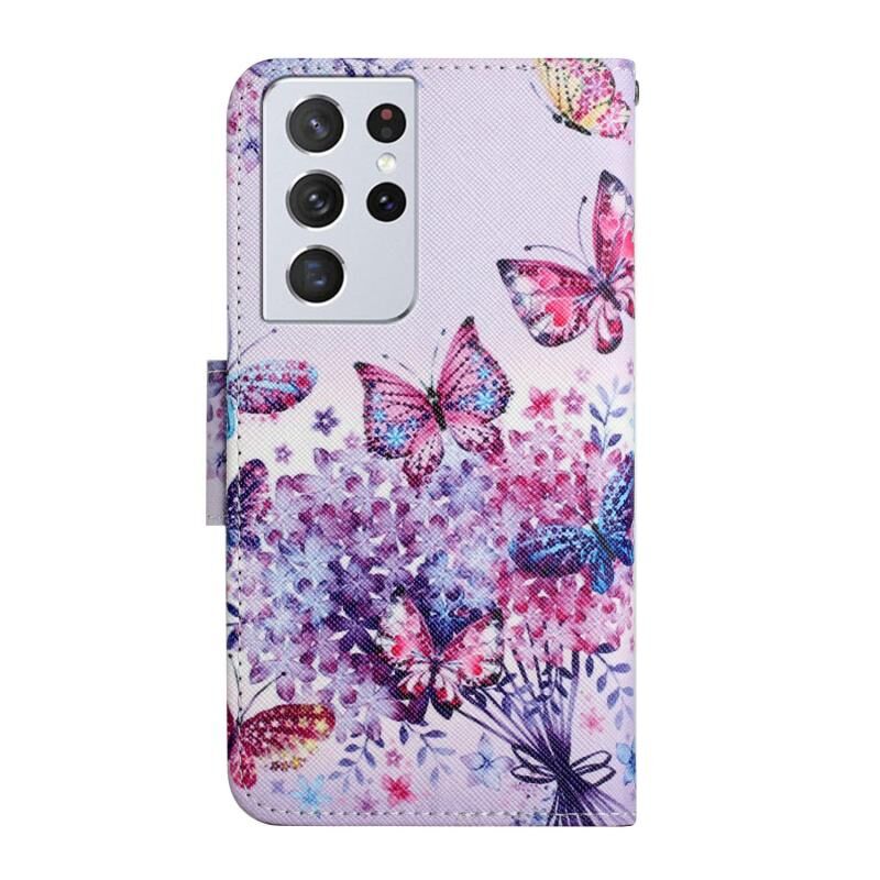 Θήκη δέρματος οριζόντιας αναδίπλωσης με σχέδιο ζωγραφικής για Samsung Galaxy S21 Ultra 5G με βάση & υποδοχή κάρτας & πορτοφόλι (Κόκκινο Λουλούδι)
