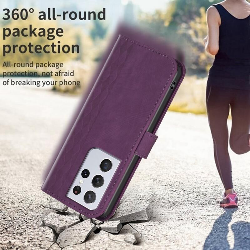 Για Samsung Galaxy S21 Ultra 5G καρό ανάγλυφη δερμάτινη θήκη τηλεφώνου (μωβ)