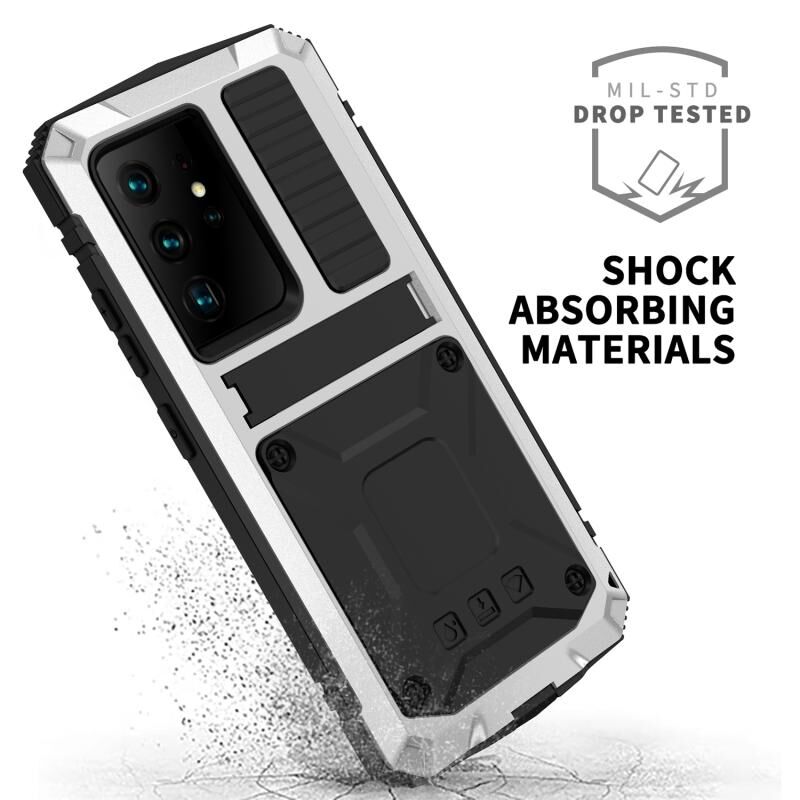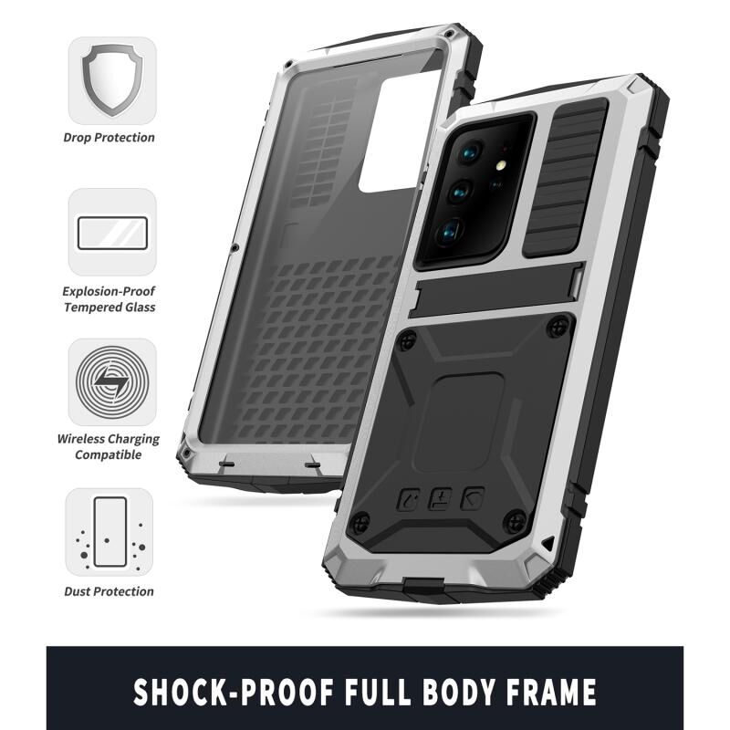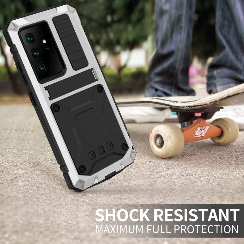 Θήκη προστασίας R-JUST για Samsung Galaxy S21 Ultra 5G, ανθεκτική σε κρούσεις, αδιάβροχη, αδιάβροχη από σκόνη, μεταλλική + σιλικόνης με βάση στήριξης (Κόκκινη) (R-JUST)