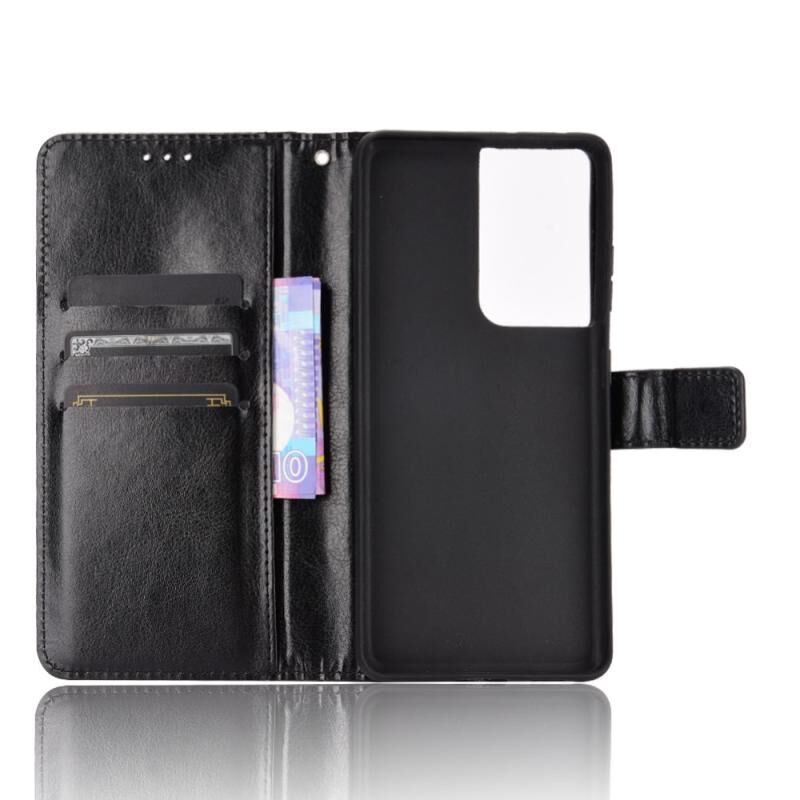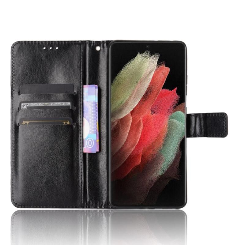 Για Samsung Galaxy S21 Ultra 5G Retro Crazy Horse Υφή οριζόντια Flip δερμάτινη θήκη με θήκη & υποδοχές για κάρτες & πλαίσιο φωτογραφιών (Μαύρο)