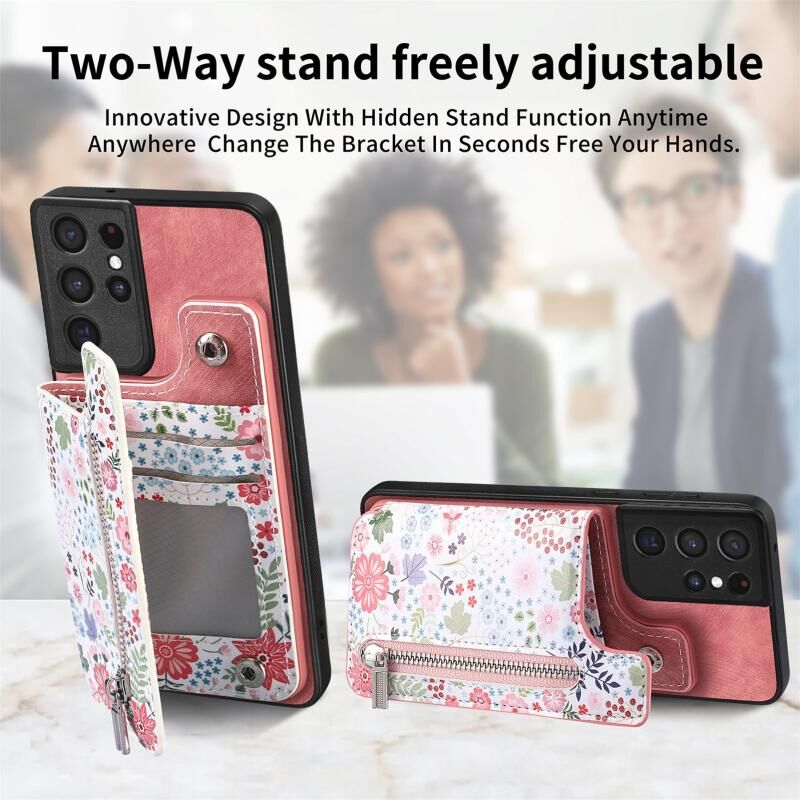Για Samsung Galaxy S21 Ultra 5G ρετρό ζωγραφισμένο φερμουάρ πορτοφόλι πίσω τηλέφωνο υπόθεση (ροζ)