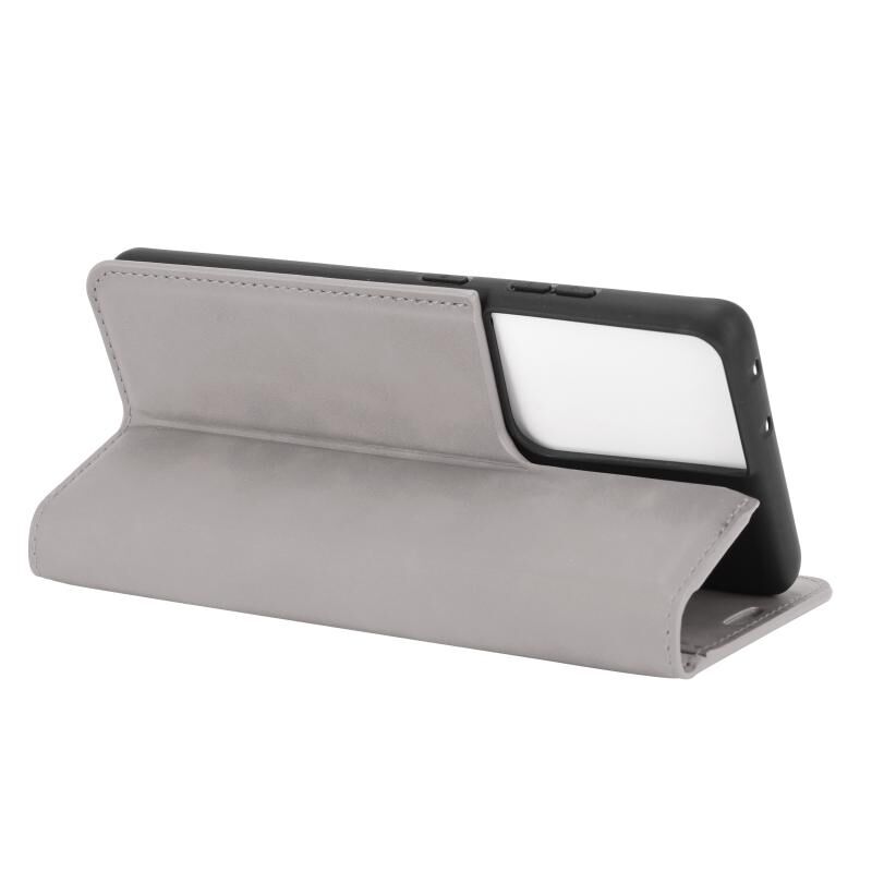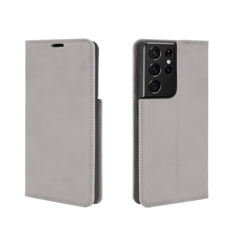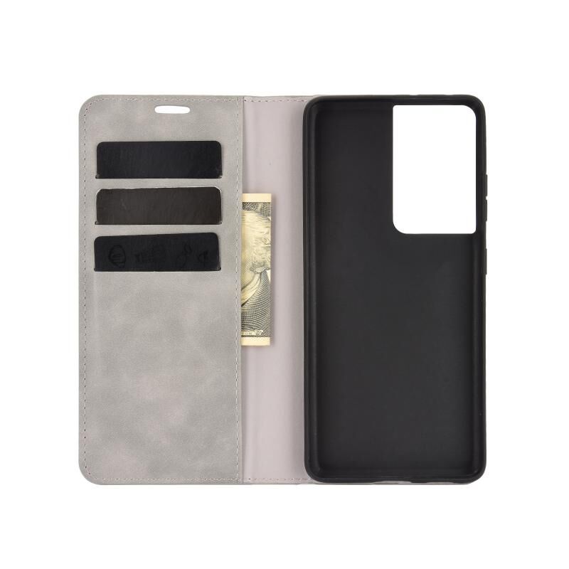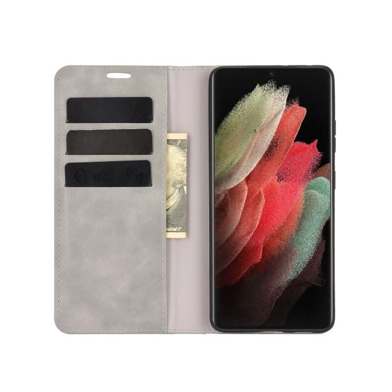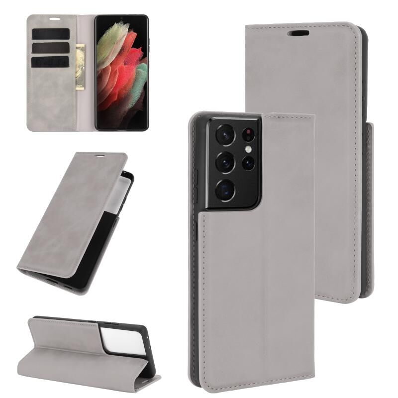 Για Samsung Galaxy S21 Ultra 5G Retro-skin Business Μαγνητική δερμάτινη θήκη αναρρόφησης με θήκη & υποδοχές για κάρτες & πορτοφόλι (γκρι)