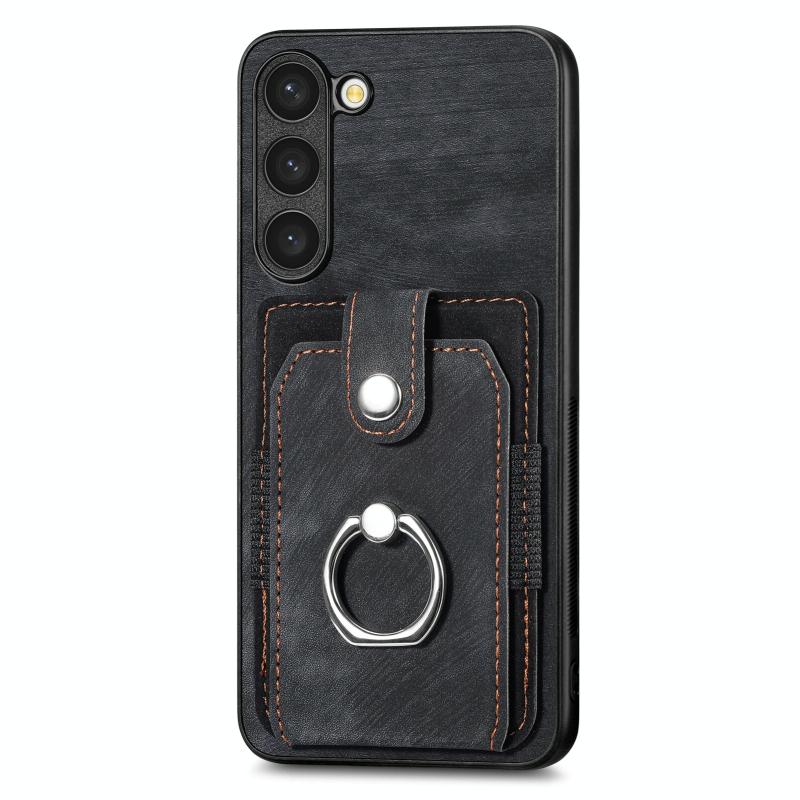 For Samsung Galaxy S21 Ultra 5G Retro Skin-feel Ring Card Wallet Phone Case(Black)