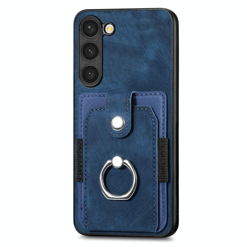 For Samsung Galaxy S21 Ultra 5G Retro Skin-feel Ring Card Wallet Phone Case(Blue)