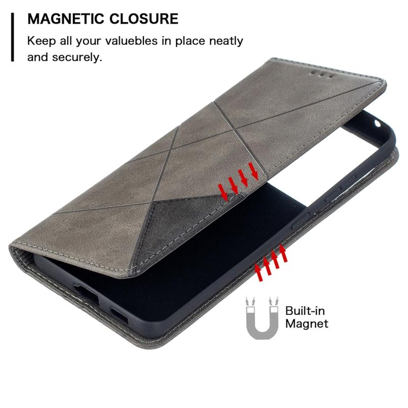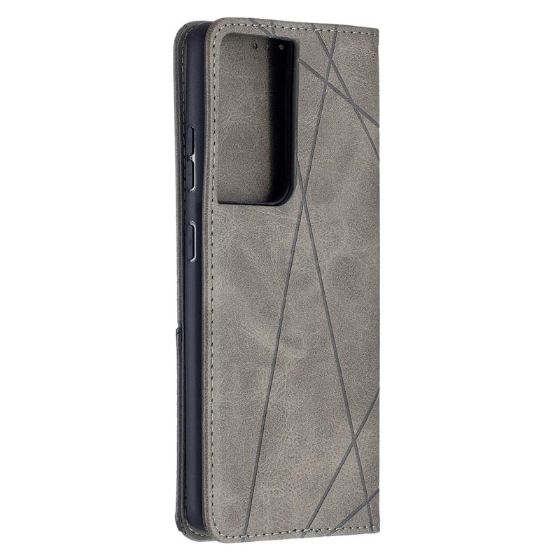 For Samsung Galaxy S21 Ultra 5G Rhombus Texture Horizontal Flip Magnetic Leather Case with Holder & Card Slots(Grey)