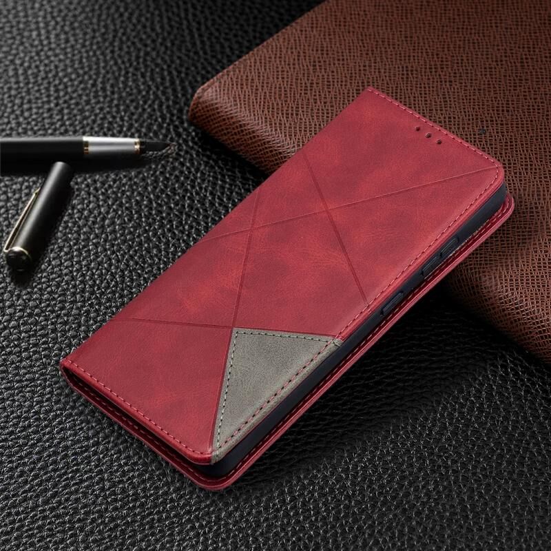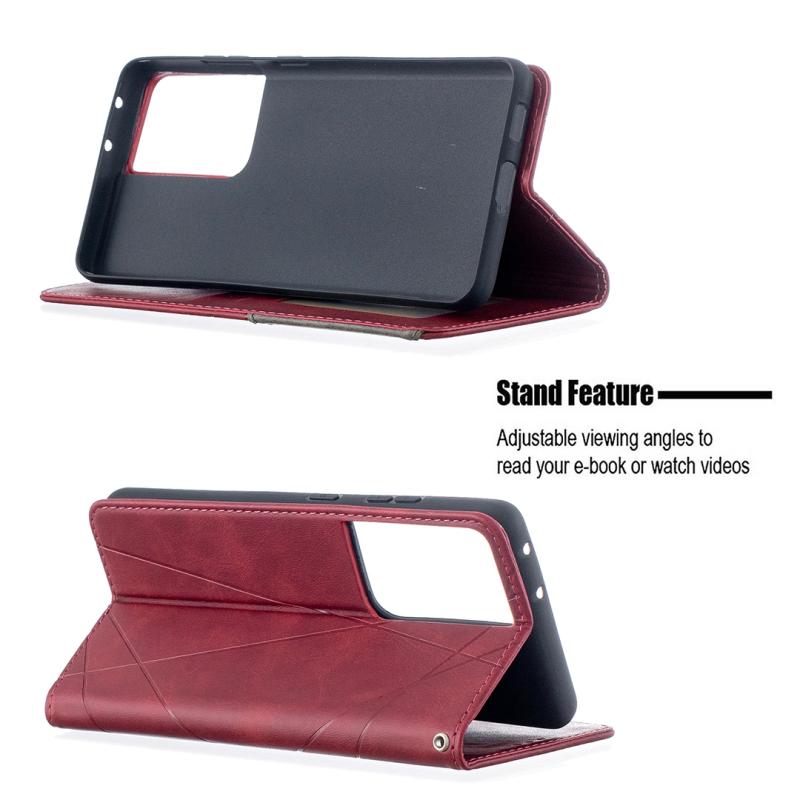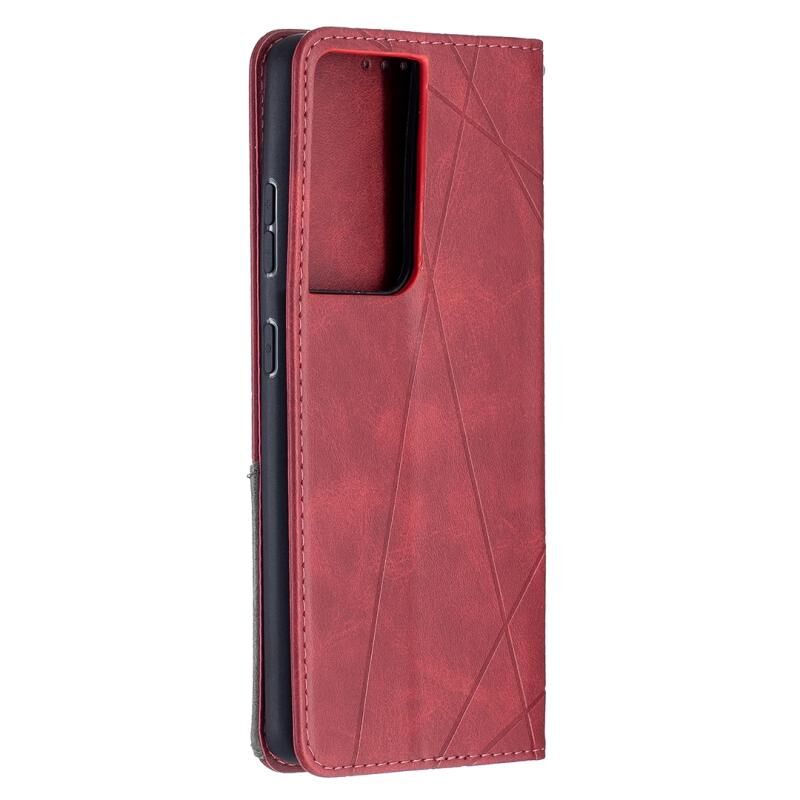 For Samsung Galaxy S21 Ultra 5G Rhombus Texture Horizontal Flip Magnetic Leather Case with Holder & Card Slots(Red)