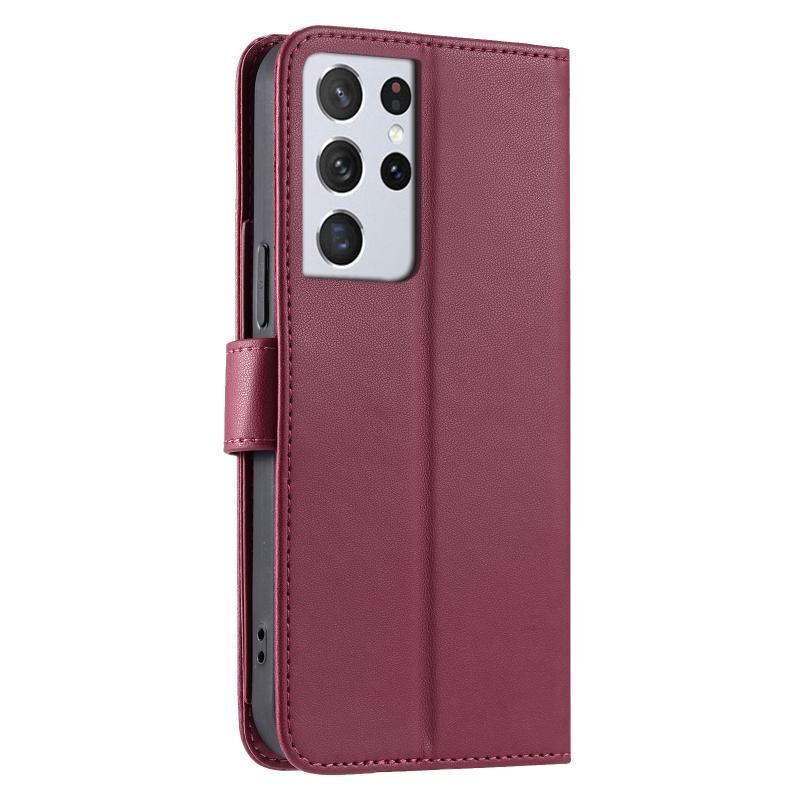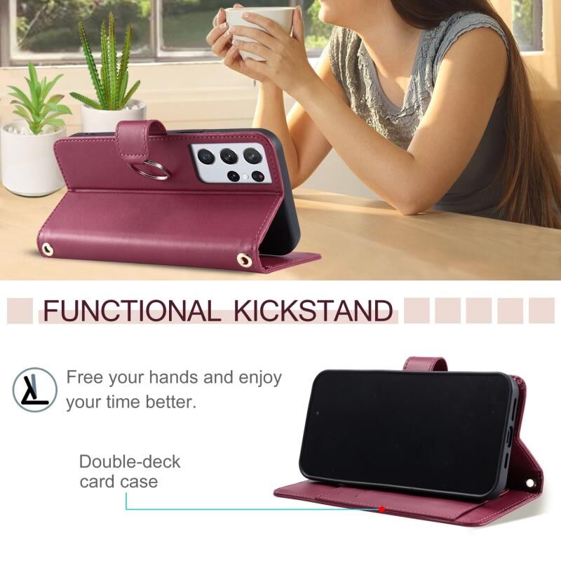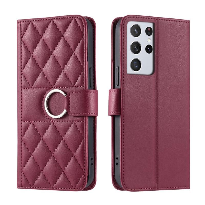 For Samsung Galaxy S21 Ultra 5G Ring Buckle Rhombic Leather Phone Case(Red)
