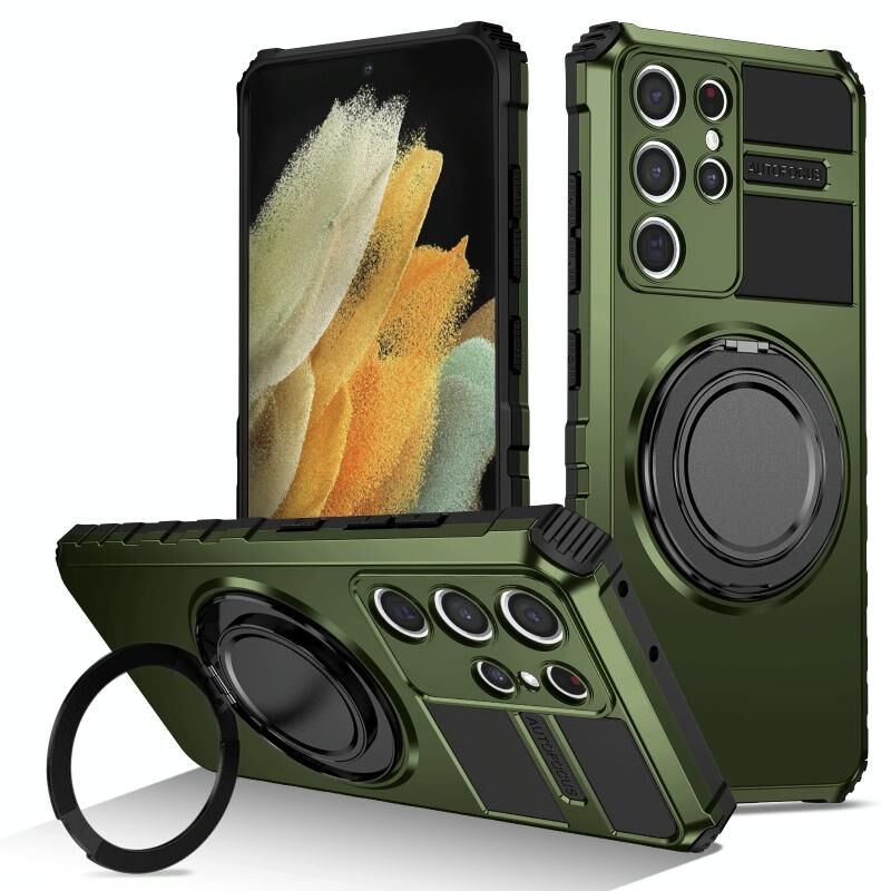 Για Samsung Galaxy S21 Ultra 5G Περιστρεφόμενη μαγνητική θήκη τηλεφώνου (σκούρο πράσινο)