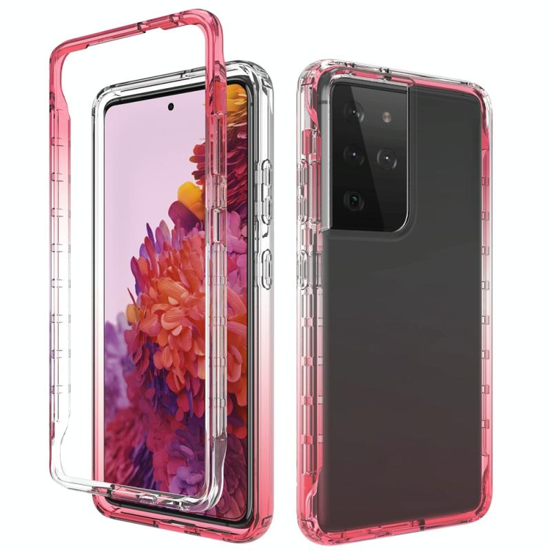 For Samsung Galaxy S21 Ultra 5G Shockproof High Transparency Two-color Gradual Change PC+TPU Candy Colors Protective Case(Red)