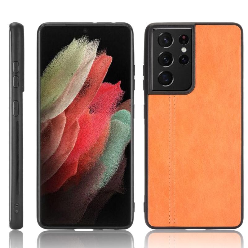 Για το Samsung Galaxy S21 Ultra 5G Shockproof Ράψιμο μοτίβο αγελάδας δέρμα PC + PU + TPU υπόθεση (πορτοκαλί)
