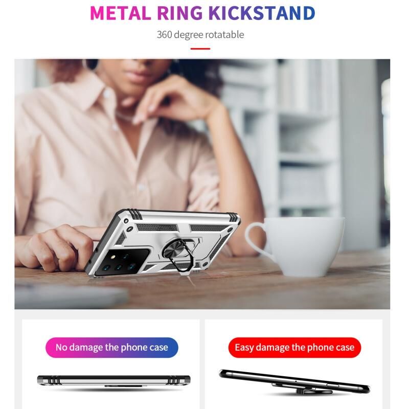 Για Samsung Galaxy S21 Ultra 5G Shockproof TPU + PC Προστατευτική θήκη με 360 μοίρες περιστρεφόμενη θήκη (Ασημί)
