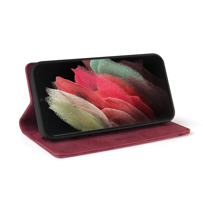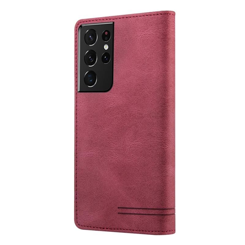 Για Samsung Galaxy S21 Ultra 5G Skin Feel Anti-theft Brush Οριζόντια Flip δερμάτινη θήκη με θήκη & υποδοχές για κάρτες & πορτοφόλι (κόκκινο κρασί)