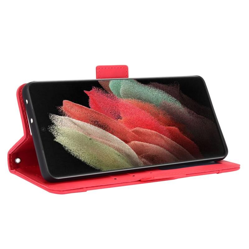Για Samsung Galaxy S21 Ultra 5G Skin Feel μοσχάρι μοτίβο οριζόντια Flip δερμάτινη θήκη με θήκη & υποδοχές για κάρτες & πλαίσιο φωτογραφιών (κόκκινο)