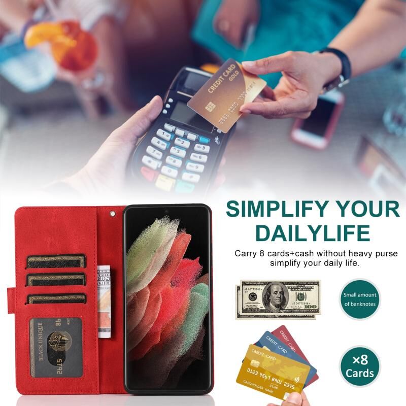 Για Samsung Galaxy S21 Ultra 5G Skin-feel Crazy Horse υφή φερμουάρ τσάντα πορτοφόλι οριζόντια Flip δερμάτινη θήκη με κάτοχο & υποδοχές για κάρτες & πορτοφόλι & Lanyard (κόκκινο)