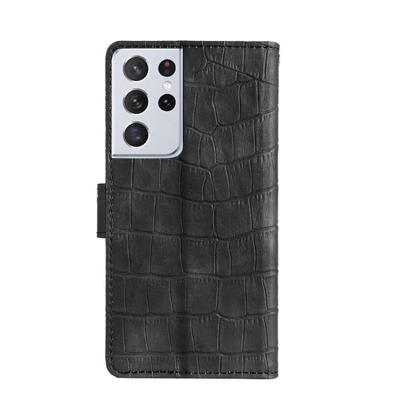 Θήκη Samsung Galaxy S21 Ultra 5G με υφή δέρματος κροκόδειλου, μαγνητικό κούμπωμα, οριζόντια, από δερματίνη PU με βάση & θήκες για κάρτες & πορτοφόλι (Μαύρο)