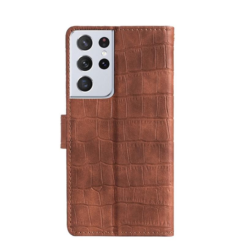 Θήκη Samsung Galaxy S21 Ultra 5G με υφή δέρματος κροκόδειλου, μαγνητικό κούμπωμα, οριζόντια, από δερματίνη PU με βάση & θήκες για κάρτες & πορτοφόλι (Μαύρο)