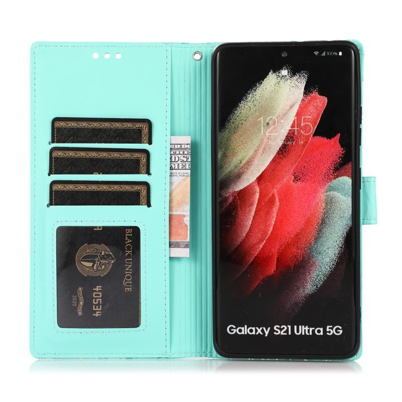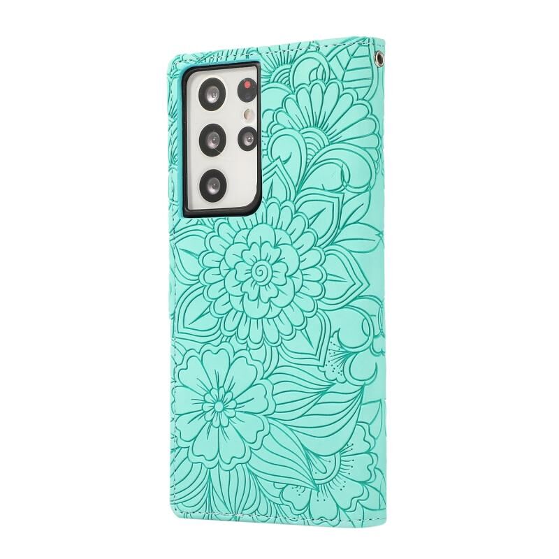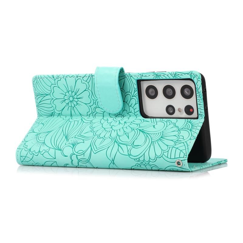 Για Samsung Galaxy S21 Ultra 5G Skin Feel ανάγλυφο ηλιοτρόπιο οριζόντια Flip δερμάτινη θήκη με θήκη & υποδοχές για κάρτες & πορτοφόλι & κορδόνι (πράσινο)