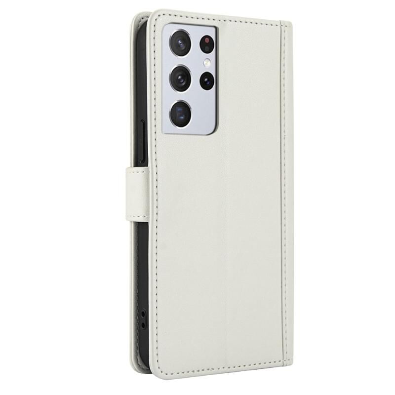 Για Samsung Galaxy S21 Ultra 5G δέρμα αίσθηση καθαρό χρώμα κάρτα υποδοχές δερμάτινη θήκη τηλεφώνου με διπλό κορδόνι (λευκό)