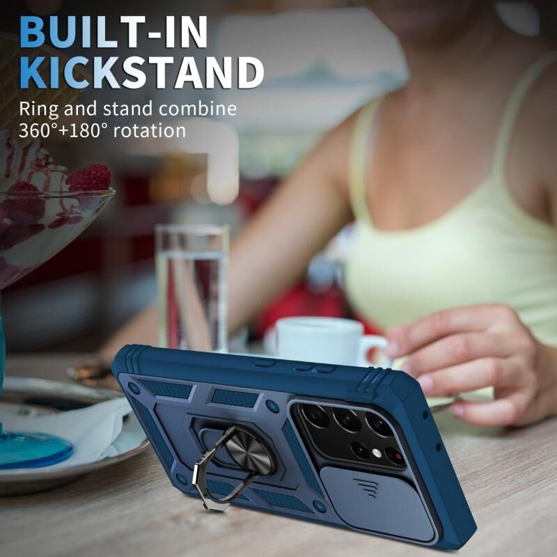 Για Samsung Galaxy S21 Ultra 5G συρόμενη κάμερα κάλυμμα Design TPU + PC προστατευτική θήκη με 360 μοίρες περιστρεφόμενη θήκη & υποδοχή κάρτας (μπλε + μπλε)