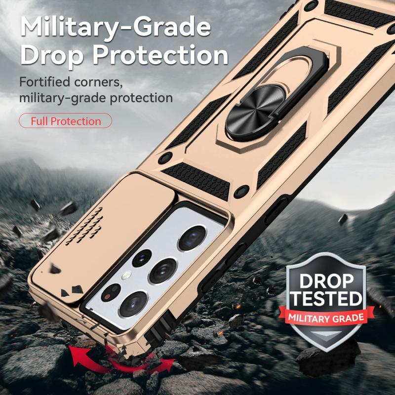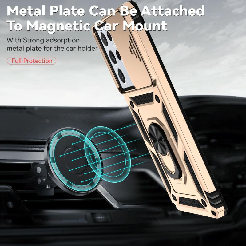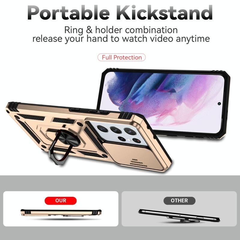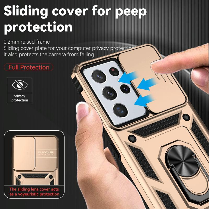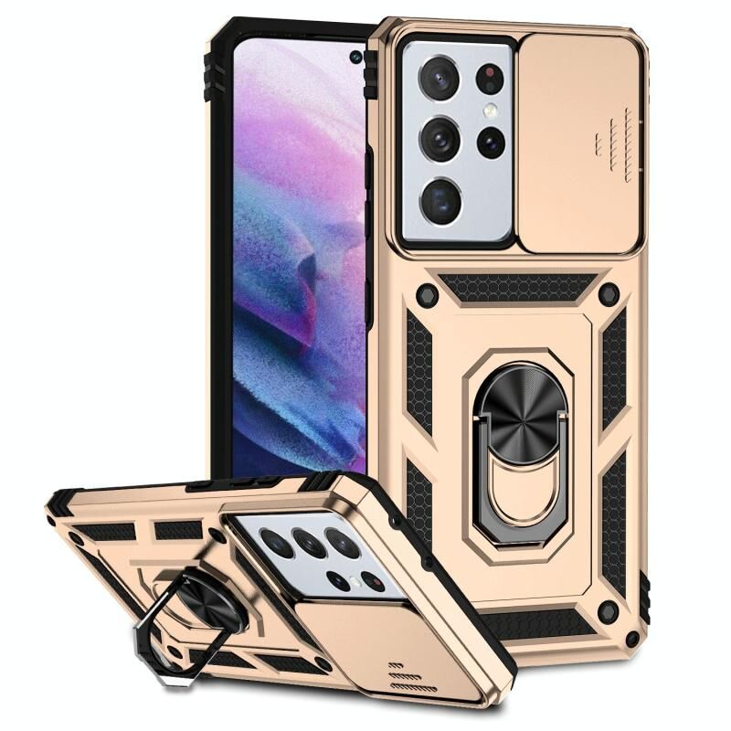 For Samsung Galaxy S21 Ultra 5G Sliding Camshield Holder Phone Case(Gold)