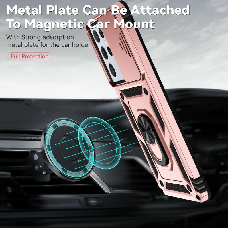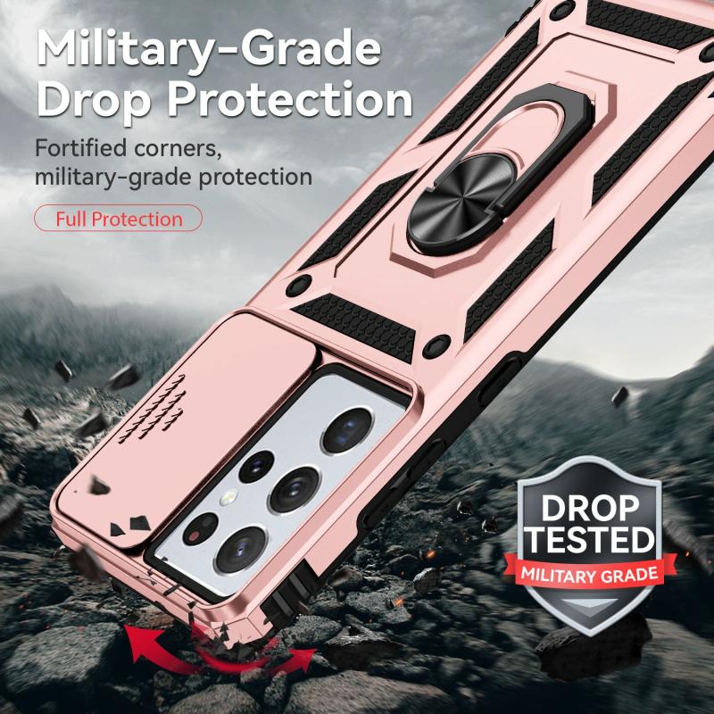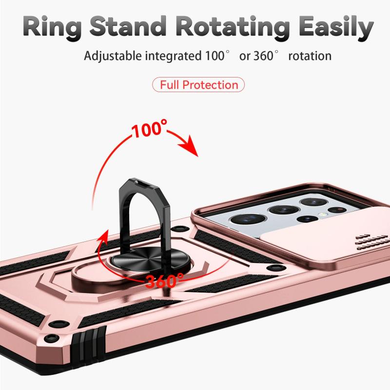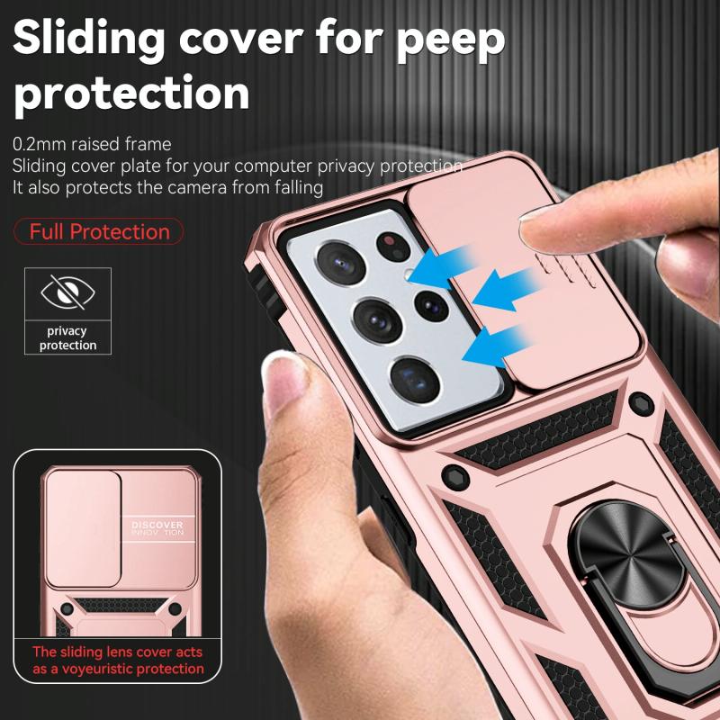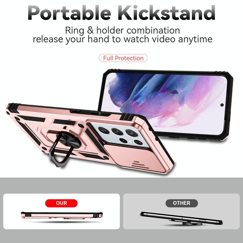 For Samsung Galaxy S21 Ultra 5G Sliding Camshield Holder Phone Case(Rose Gold)