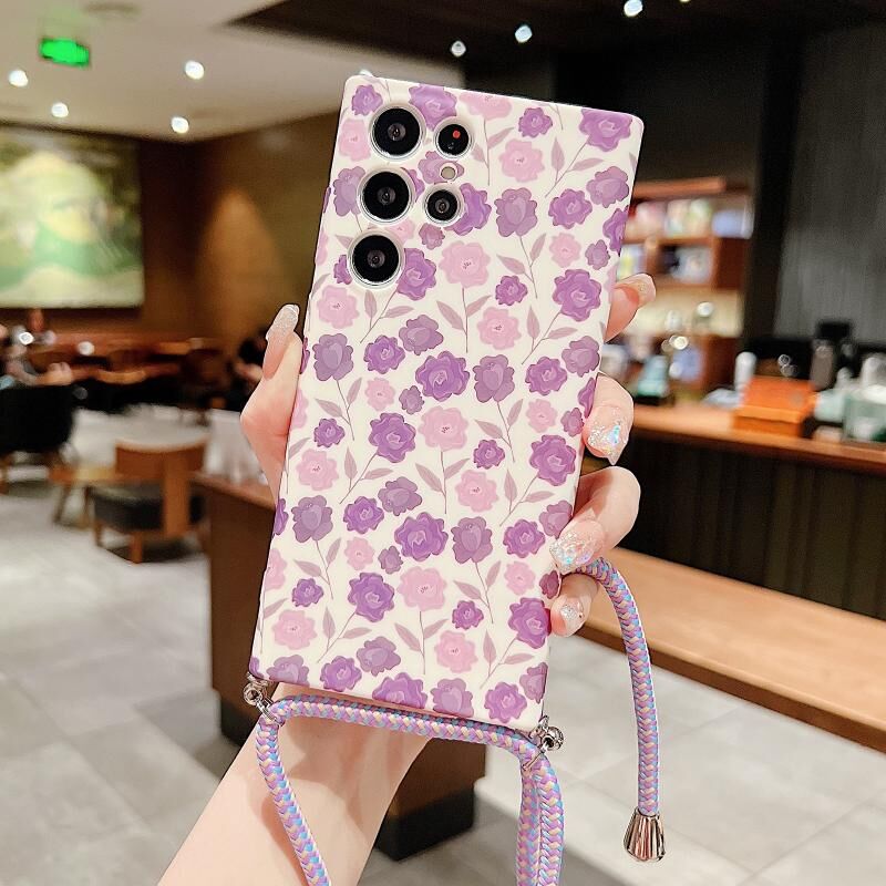 Θήκη τηλεφώνου με κορδόνι για Samsung Galaxy S21 Ultra 5G, μικρό λουλουδάτο σχέδιο (Μαύρο Κόκκινο Λουλούδι)
