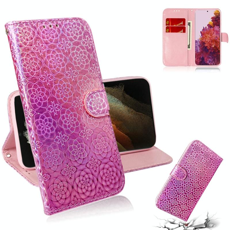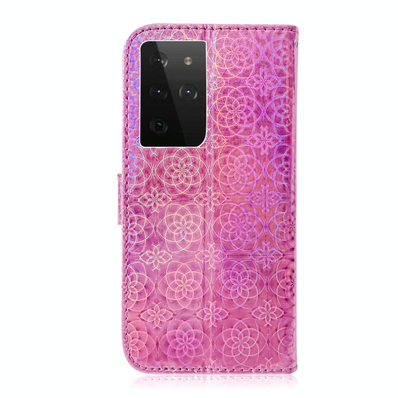 For Samsung Galaxy S21 Ultra 5G Solid Color Colorful Magnetic Buckle Horizontal Flip PU Leather Case with Holder & Card Slots & Wallet & Lanyard(Pink)