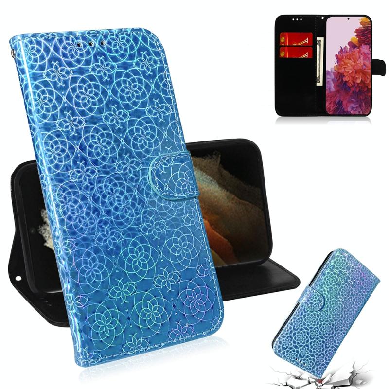 For Samsung Galaxy S21 Ultra 5G Solid Color Colorful Magnetic Buckle Horizontal Flip PU Leather Case with Holder & Card Slots & Wallet & Lanyard(Sky Blue)