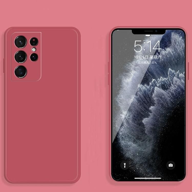 Για Samsung Galaxy S21 Ultra 5G Solid Color Απομίμηση υγρού σιλικόνης Straight Edge Dropproof Full Coverage Προστατευτική θήκη (κόκκινο)