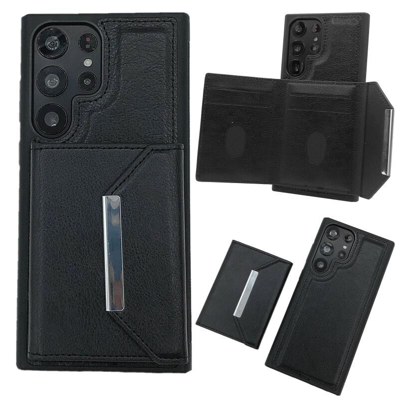 Για Samsung Galaxy S21 Ultra 5G στερεό χρώμα μέταλλο πόρπη κάρτα υποδοχές τσάντα υπόθεση τηλεφώνου (μαύρο)
