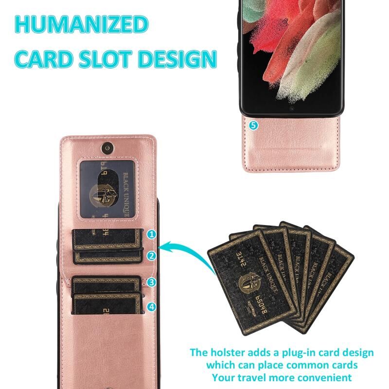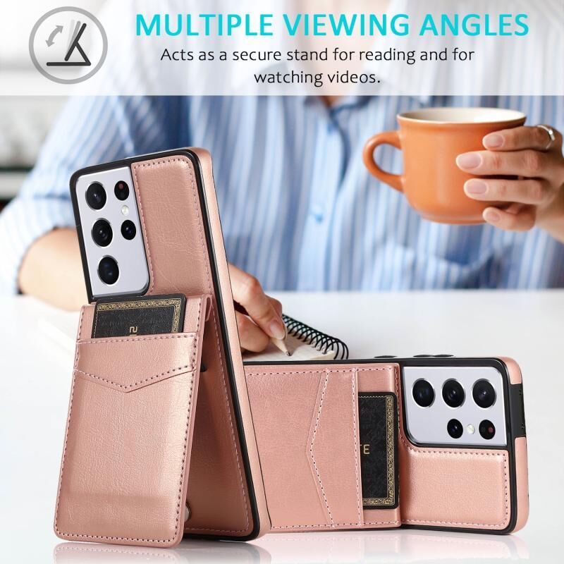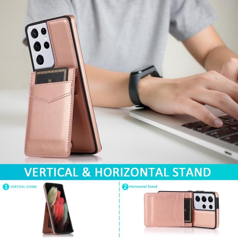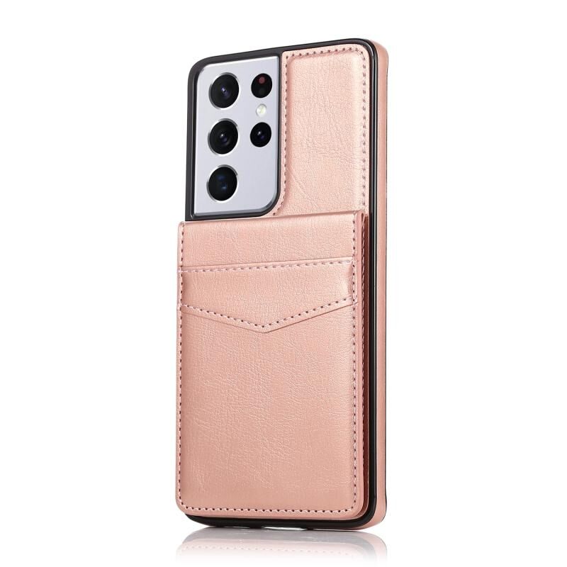 Για Samsung Galaxy S21 Ultra 5G Αμιγές χρώμα PC + TPU προστατευτική θήκη με θήκη & υποδοχές για κάρτες (ροζ χρυσό)
