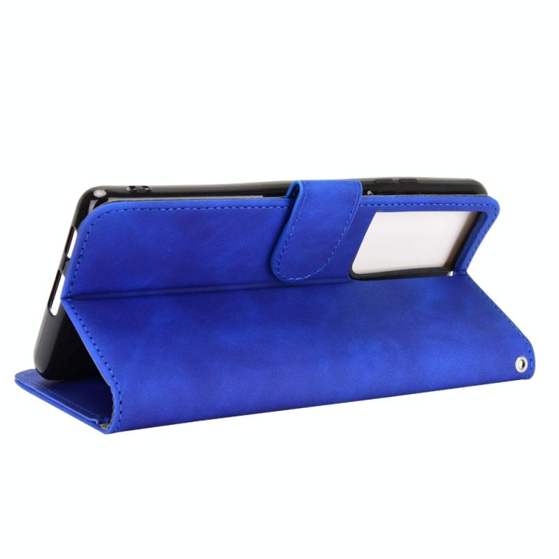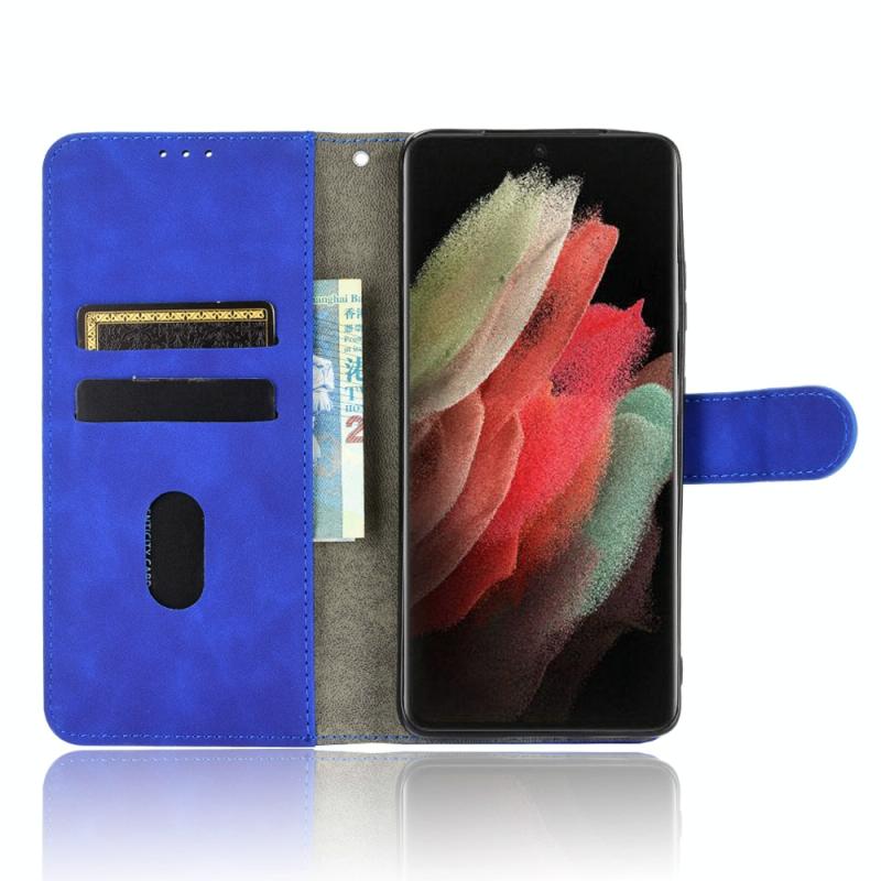 For Samsung Galaxy S21 Ultra 5G Solid Color Skin Feel Magnetic Buckle Horizontal Flip Calf Texture PU Leather Case with Holder & Card Slots & Wallet(Blue)