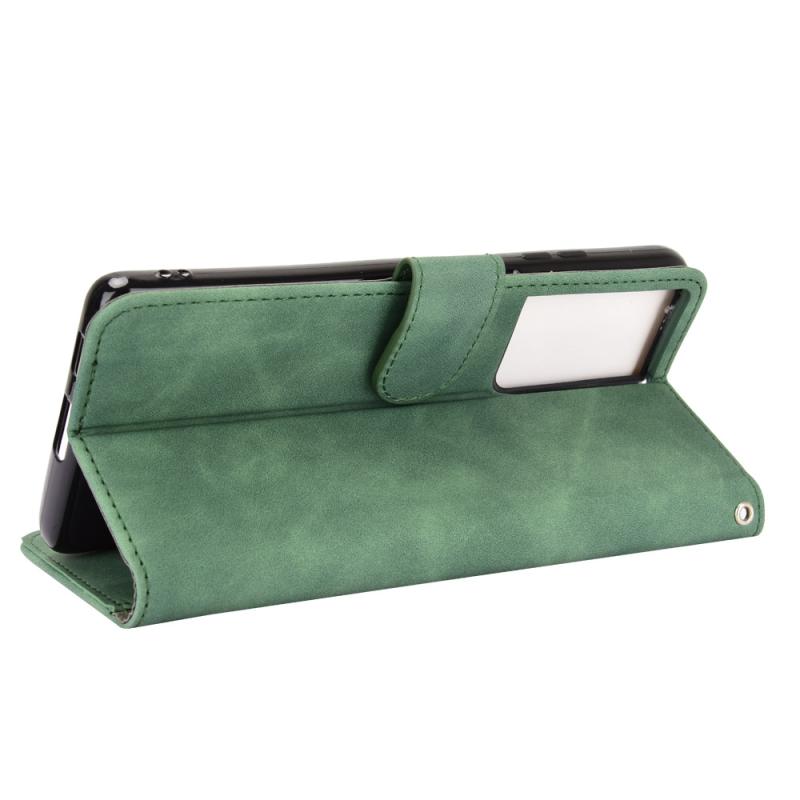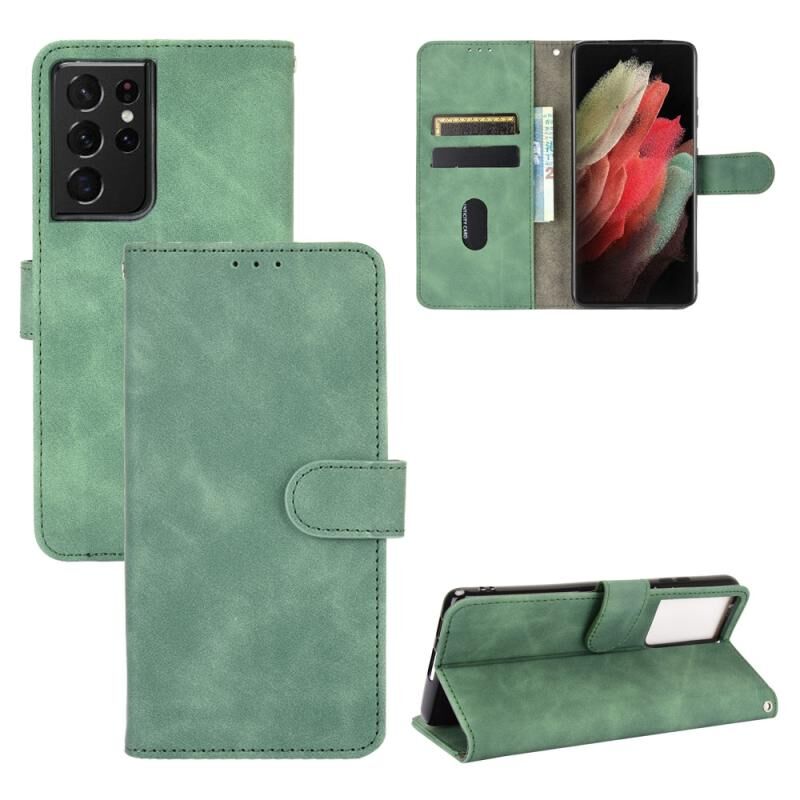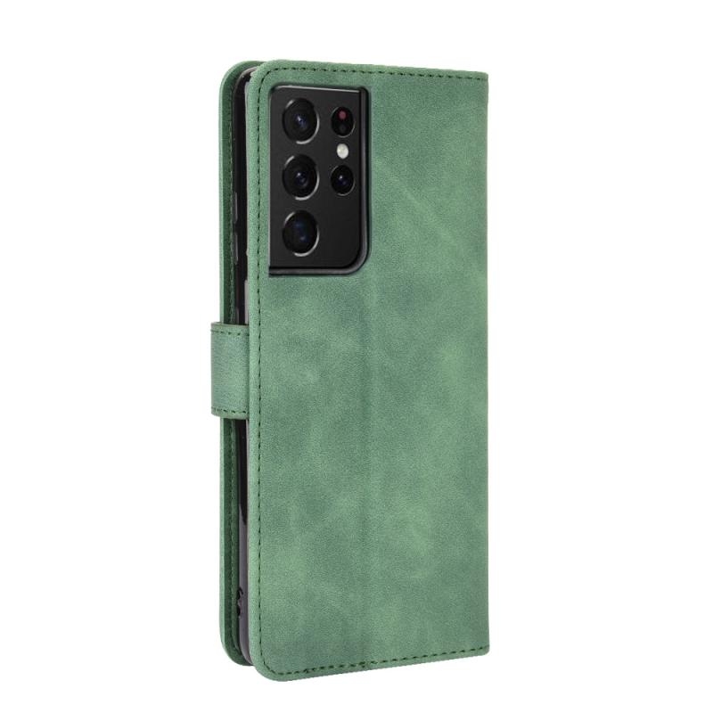 For Samsung Galaxy S21 Ultra 5G Solid Color Skin Feel Magnetic Buckle Horizontal Flip Calf Texture PU Leather Case with Holder & Card Slots & Wallet(Green)