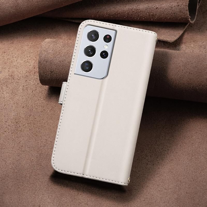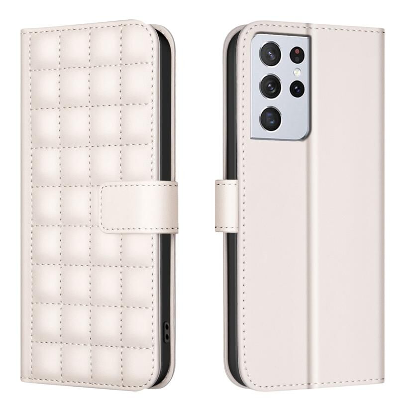 For Samsung Galaxy S21 Ultra 5G Square Texture Leather Phone Case(Beige)