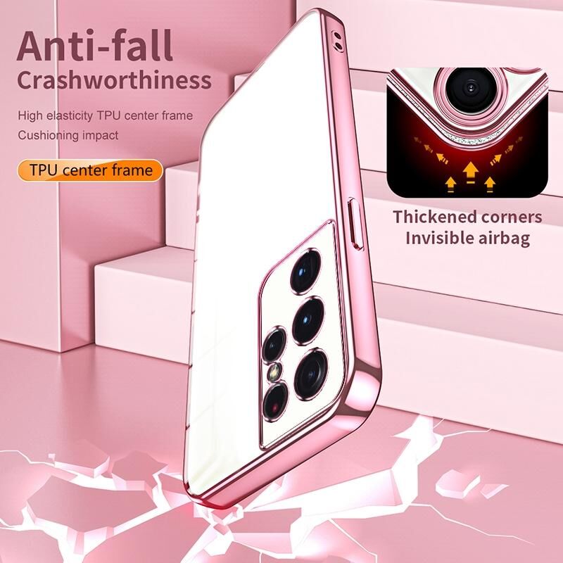 Για Samsung Galaxy S21 Ultra 5G Διαφανής επιμετάλλωση Fine Hole υπόθεση τηλεφώνου (ροζ)