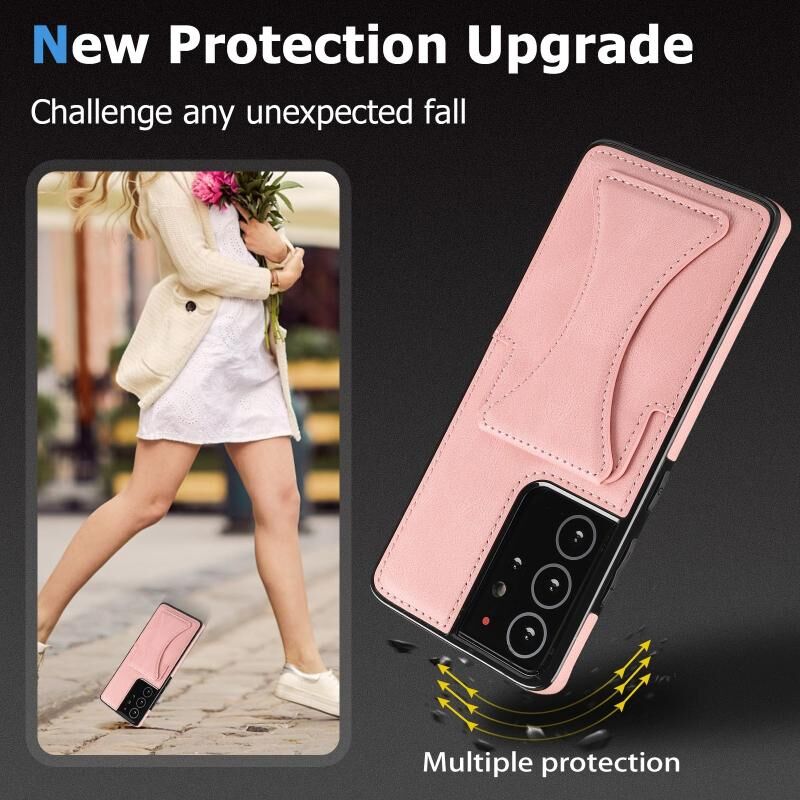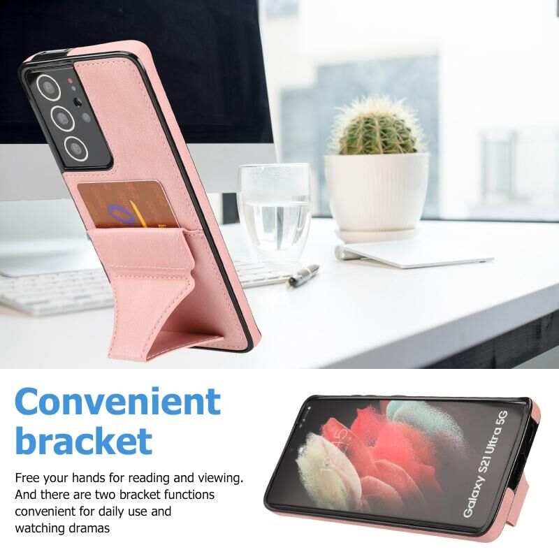 Θήκη προστασίας εξαιρετικά λεπτή και αντικραδασμική με βάση στήριξης για Samsung Galaxy S21 Ultra 5G (Χρυσορόδινο)